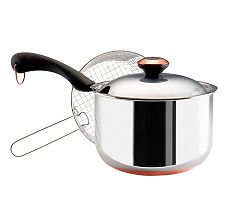Double the use, double the fun! If you enjoy deep frying your food at home, then you'll love the Paula Deen Signature Stainless Steel Deep Fryer Set. Perfect for any number of your favorite deep-fried favorites like homemade onion rings, chicken wings, fish nuggets, sweet potato chips, clam fritters, and more. Take the fry basket out and you are all set to make your favorite sauces, pastas, vegetables, meats, and more. This 4qt deep fryer with basket and stainless steel lid features a thick aluminum disk base with a full cap aluminum and copper base which heats quickly ... Read more